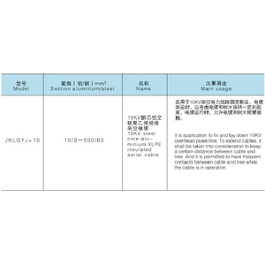 用途本产品适用于交流额定电圧U(Um)为10(12KV)的架空电力线路。适用条件1、电缆导体的*高长期允许工作温度为90℃。2、敷设温度不低于-20℃。3、短路时(*长持续时间不超过5秒)导体的*高温度应不大于250℃。型号规格交货要求1、根据双方的协议以任意长度交货。2、电缆应整齐卷绕在交货盘上,端头应密封良好,露出电缆盘外面的长度应满足测试要求,一只交货盘上只允许卷绕同一型号规格的电缆。3、当双方无协议时,执行GB/T14049-2008标准之规定。
